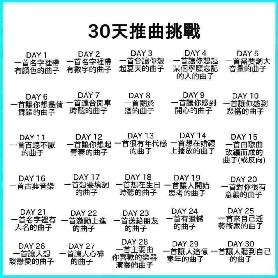 幾個月前,這推曲挑戰流行了一陣子,當時也有寫一篇文章直接將 30 首曲子寫完並簡單說明原因。這次我想重來一遍,但將裡面的問題改成 LQ7 的版本,最大原因除了留個紀念讓大家知道我的音樂喜好外,也是對裡面推曲的問法不太滿意。